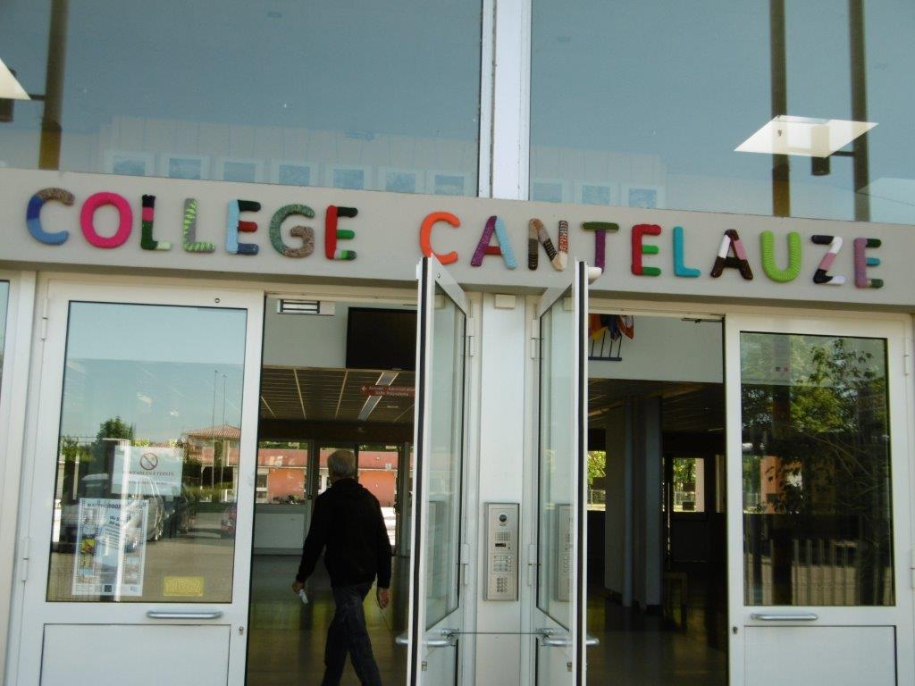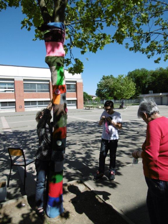 Atelier tricot intergénérationnel Yarn Bombing au collège Haute-Garonne 2016