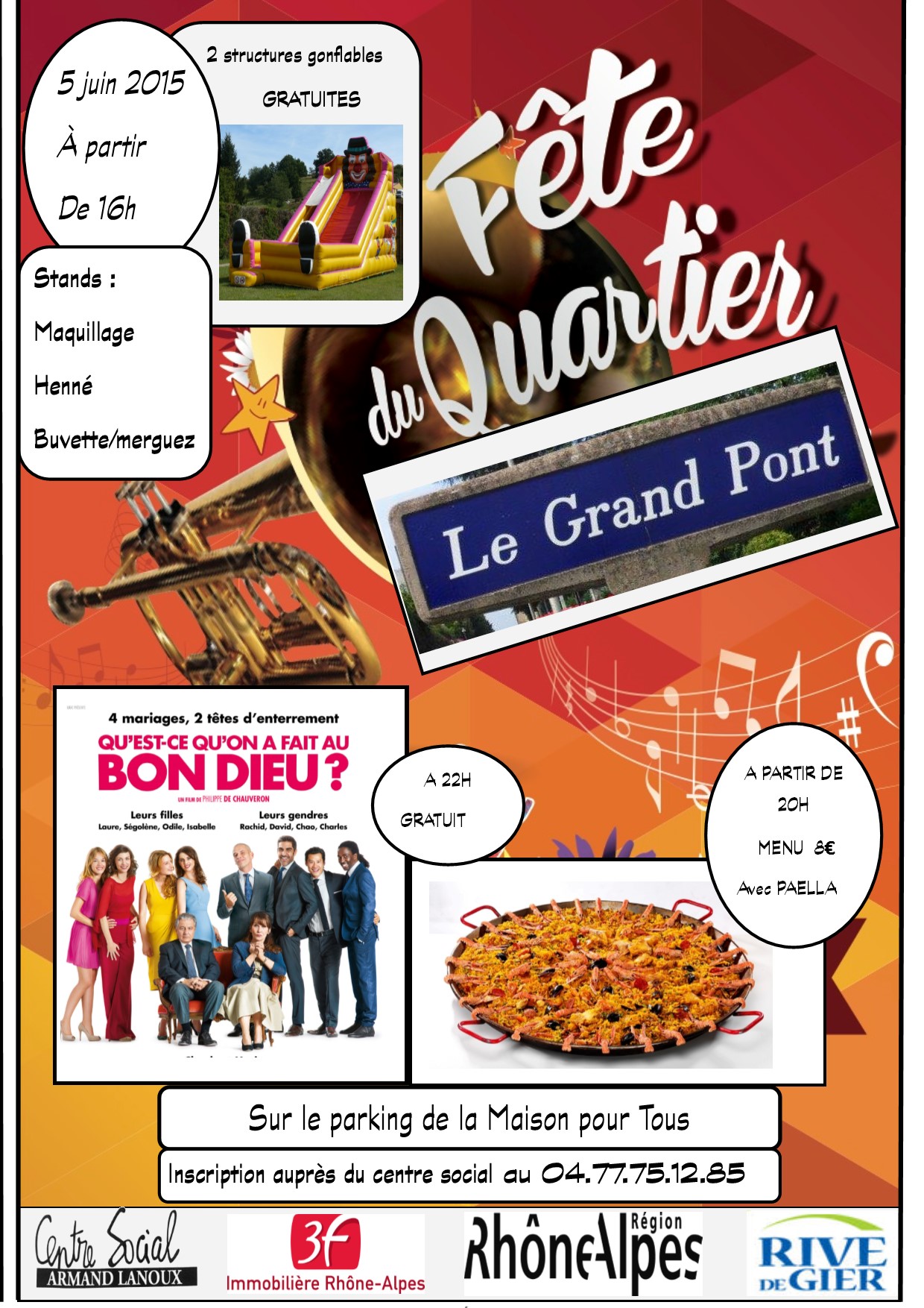 Organiser une fête au coeur du quartier, au pied des tours. Une fête gratuite et musicale pour tous les habitants du quartier, avec des animations pour les enfants, de la restauration, le tout animé par les bénévoles et les salariés du centre.