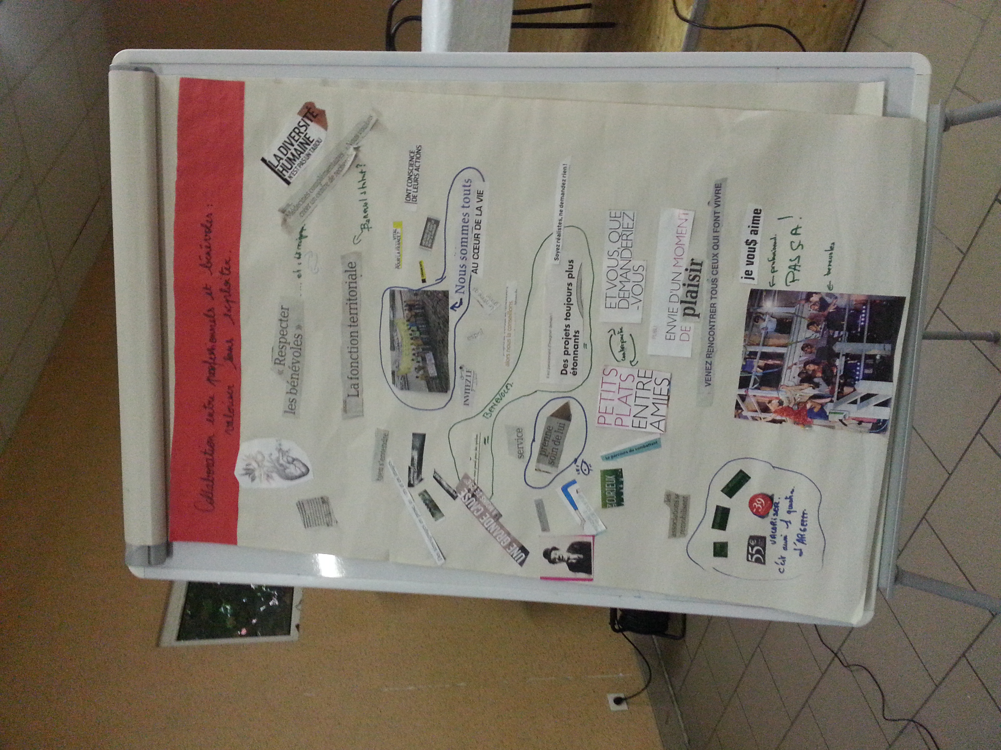 Il y a eu des groupe de travail avec les 14 jeunes qui ont mené le projet avec l'équipe du Centre Social et les professionnels en appuis technique.