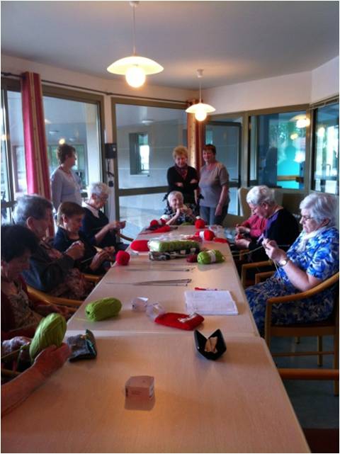 4 à 6 bénévoles du centre socioculturel animent des ateliers réguliers au sein de l'EHPAD de la commune. Ces bénévoles sont acteurs d'ateliers d'échanges de pratiques au sein du centre socioculturel. Ils ont, un jour décidé de les exporter à l'EHPAD à la grande joie des résidents. Ce sont des ateliers "tricot" et "arts plastiques" qui ont pour but le maintien du lien social et la réalisation de projets collectifs.