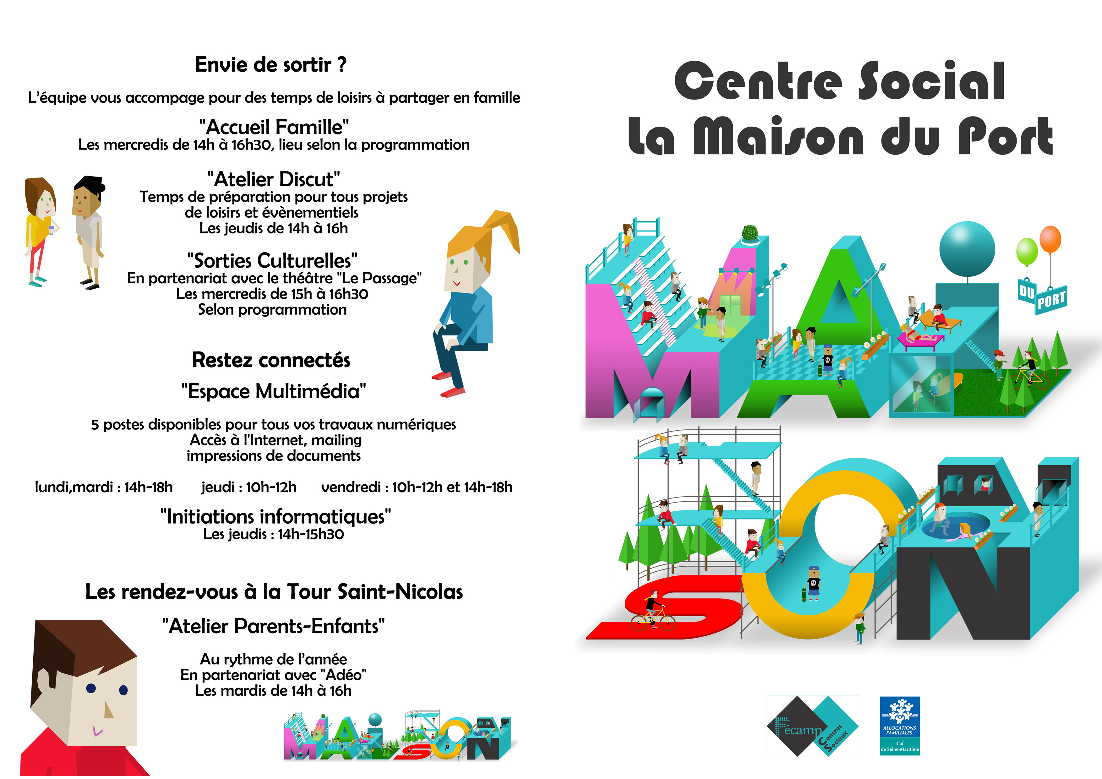 Notre centre social est en capacité d'accueillir de très nombreuses personnes sur des thématiques très diversifiées. C'est une porte ouvert sur notre territoire de 7h30 à 22h30 et fonctionne les samedis. c'est un lieu de vie, dans lequel toute personne peut s'y sentir accueillie et à son aise.
