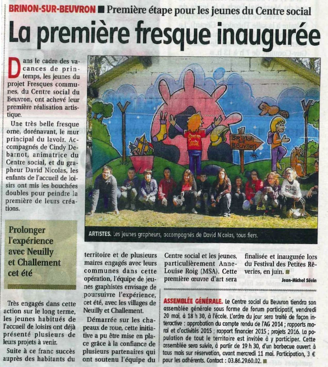 Début du projet mai 2015. Les jeunes ont monté le projet depuis l'idée jusqu'à la réalisation. Ils ont décidé de dessiner sur d'autre supports que le papier. Ils ont choisi de réaliser des fresques sur les murs des communes du territoire. Ils ont contacté les mairies des communes pour proposer leur projet. Ils ont rencontré la MSA pour participer à un projet régional (Bourgogne). Ils ont réalisé le montage du projet (accopagnement technique de l'animatrice du centre social et de la technicienne MSA). ERDF nous a interpelé après un reportage dans la presse et s'est associé au projet, par le financement et la mise en relation avec des artistes.