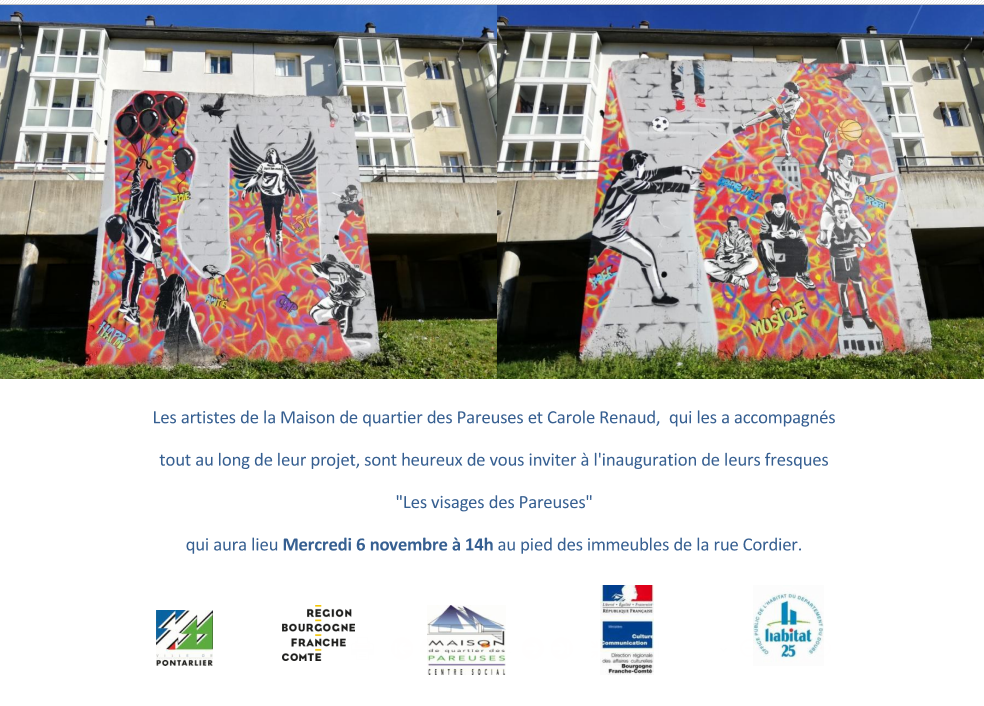 Organisation de plusieurs rencontres entre jeunes et Carole : ils découvrent le travail d'artistes de rue comme Banksy, se familiarisent avec les différentes techniques création de pochoir utilisation de bombes de peinture. Ils décident enfin la manière dont ils vont décorer ces murs. Leur idée : se mettre en scène pour faire passer des messages de tolérance, d'amitié, de liberté et montrer que dans leur quartier il se passe des choses... On peut y voir un jeune qui tire un mur gris derrière lequel apparaissent d'autres jeunes qui jouent font du sport. On y voit également une jeune fille qui tient des ballons de baudruche et qui s'envole retenue par une copine. Bref on y voit de belles choses colorées qui tranche bien avec cette dalle grise triste...