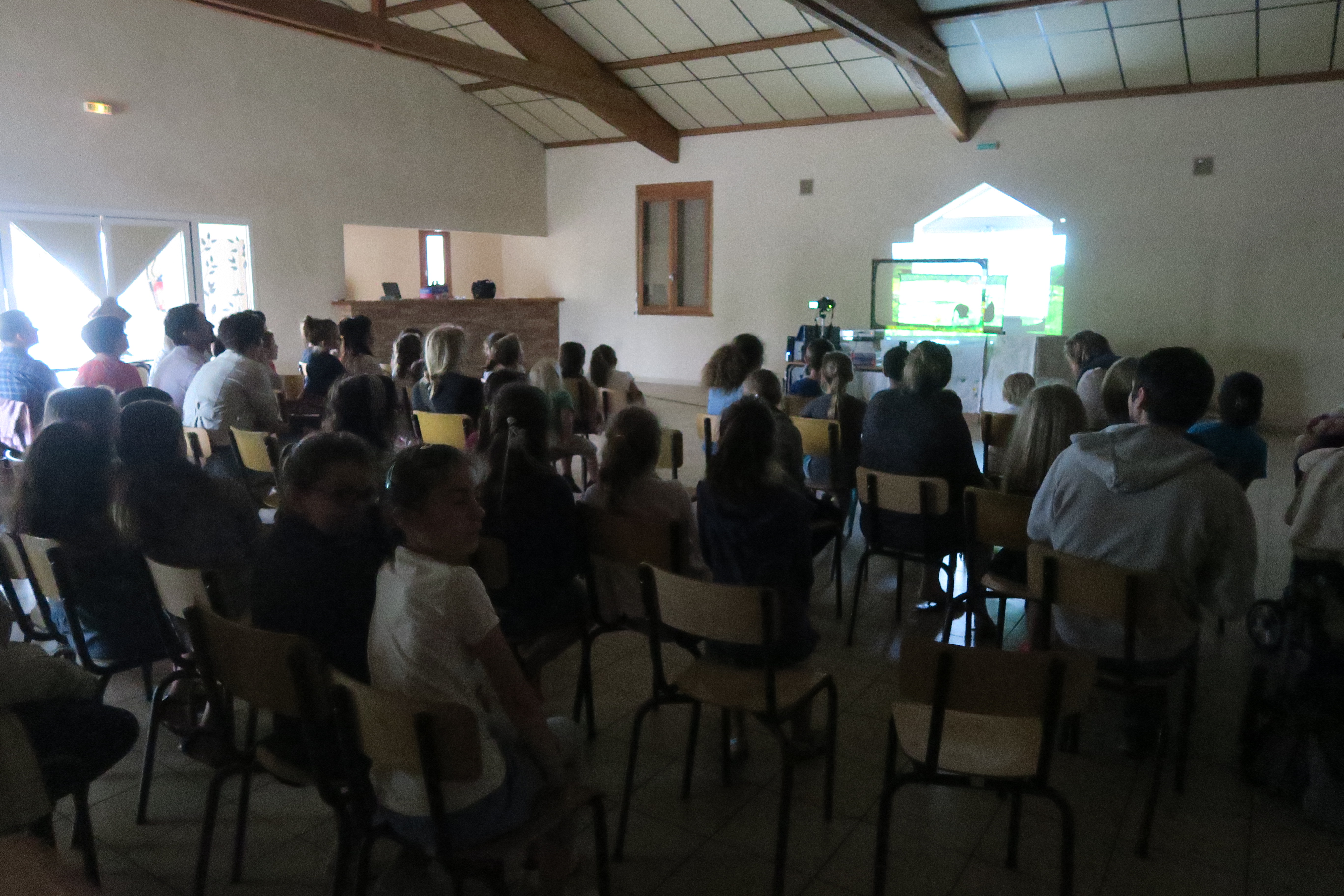 le spectacle a eu lieu dans la salle des fêtes, une trentaine de spectateurs, des parents mais aussi les enfants venus de l'éole d'autres communes ont assisté au spectacle. petits et trands sont resytés accroches au spectacle (20mn de mise en scène, goûter offert par la municipalité)