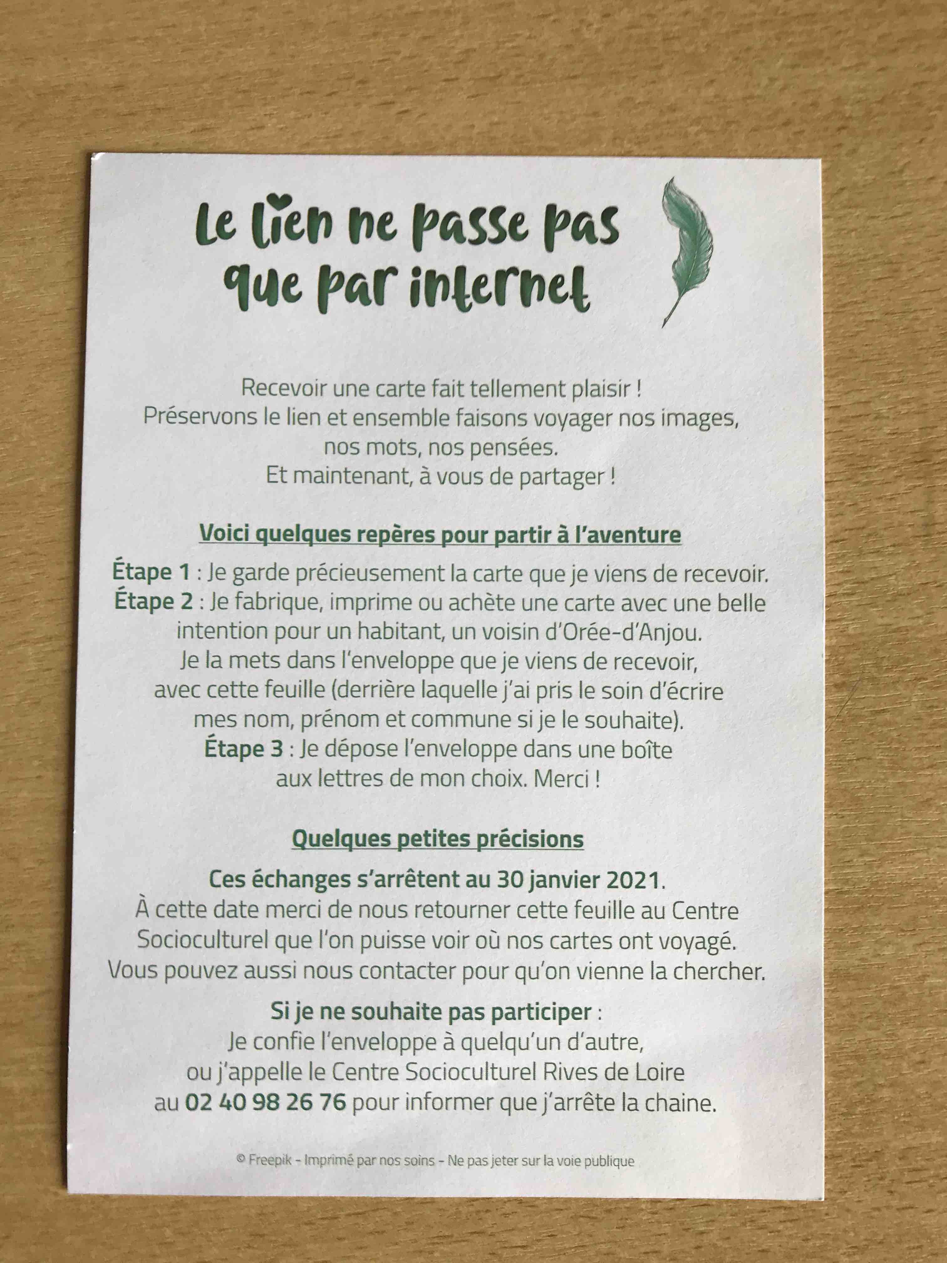 Durant la période 2020, l'atelier a pu se poursuivre par échanges de mails coordonné par le centre social.
