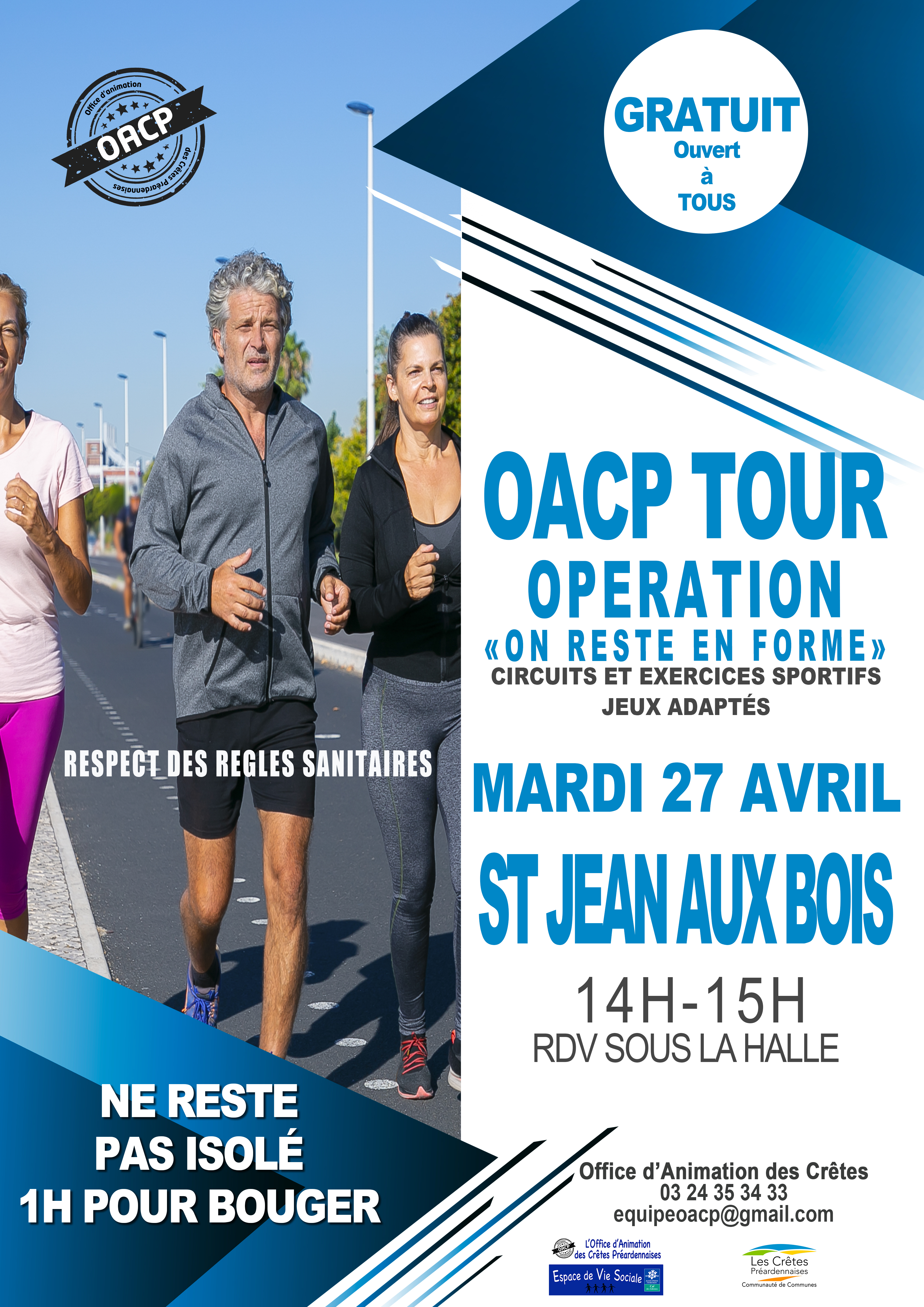Mise en place d'ateliers itiinérants autour du sport et de la mémoire pour de spublics intergénrationnels. A travers des ateliers encadrés par des animateurs et éducateurs professionnels OACP, 3 à 4 exercices sont proposés sur le domaine sportif et motricité-coordination. Puis suite à ces exercices des ateliers défis mémoires sous forme de jeux sont proposés par la suite. Ces ateliers se passent dans des lieux divers et variés: halles communales, place publique, terrain de sport extérieur.