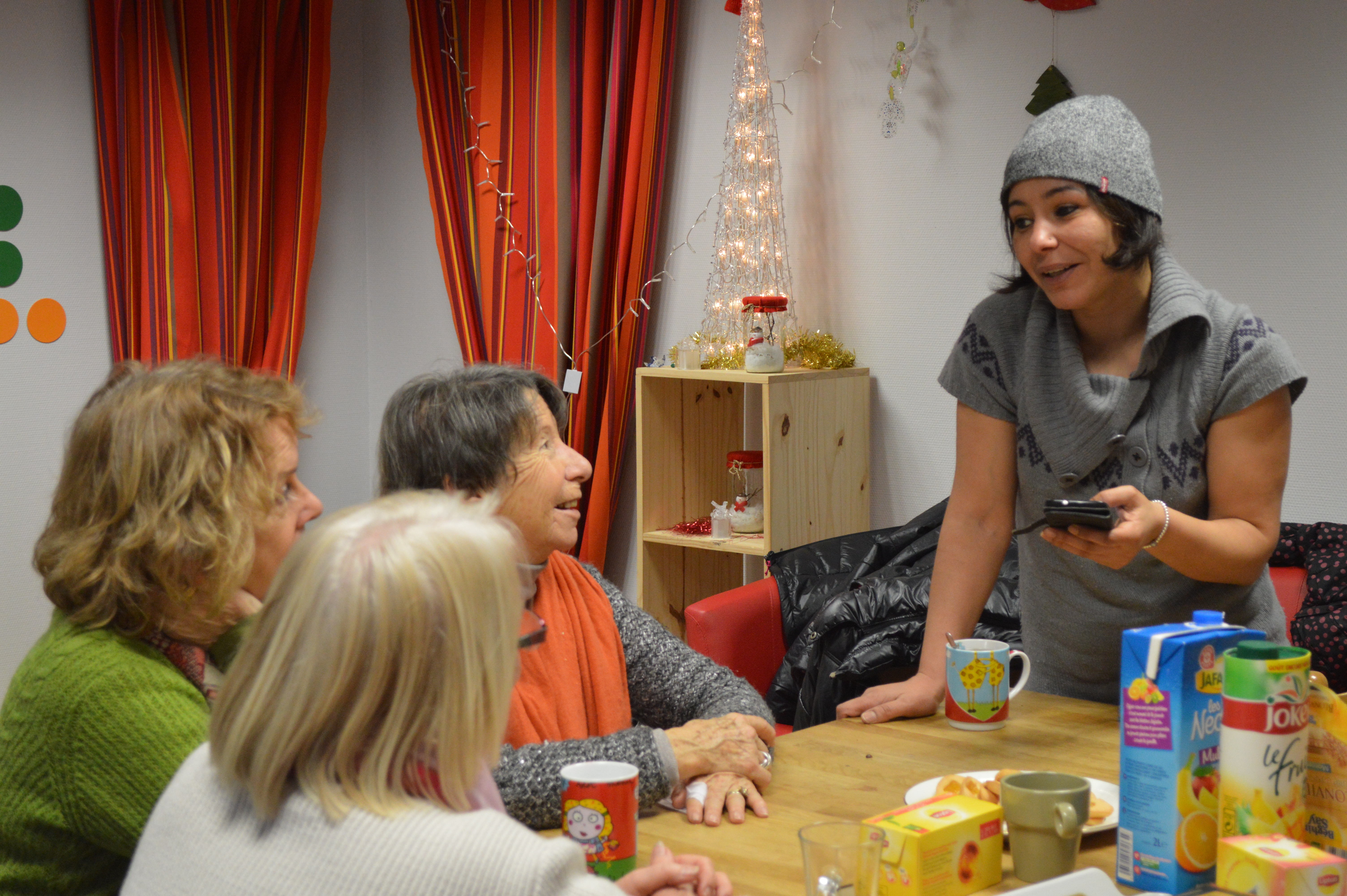 Au fil des mois, les « P’tits dej » du CSC sont devenus des rendez-vous fidèles pour un petit noyau qui souhaite échanger sur plusieurs sujets, apprendre à mieux se connaître, partager des savoirs et peut-être mettre en place des ateliers découvertes, des initiatives… On compte environ 6 à 10 personnes de tous âges (de 3 mois à >80 ans), et ces rencontres intergénérationnelles et multiculturelles égayent les discussions et font varier les sujets. L’intérêt porté aux artistes est aussi bien présent et l’on sent un vrai plaisir pour tous à se découvrir, partager son parcours, ses expériences…