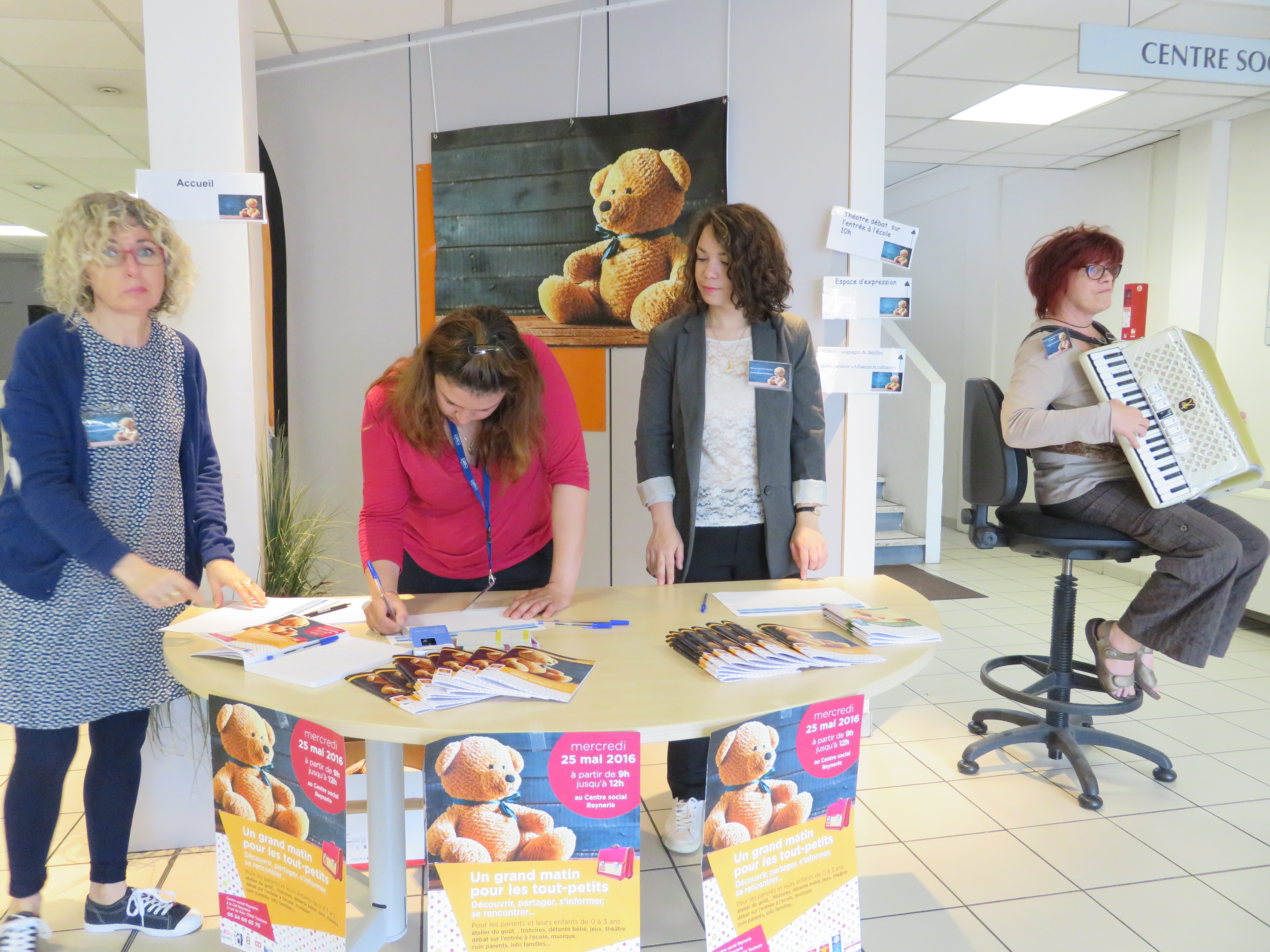 Nous avons invité toutes les assistantes maternelles de la CCPR et les parents usagers du centre social accompagnés de leurs enfants de 0 à 4 ans.